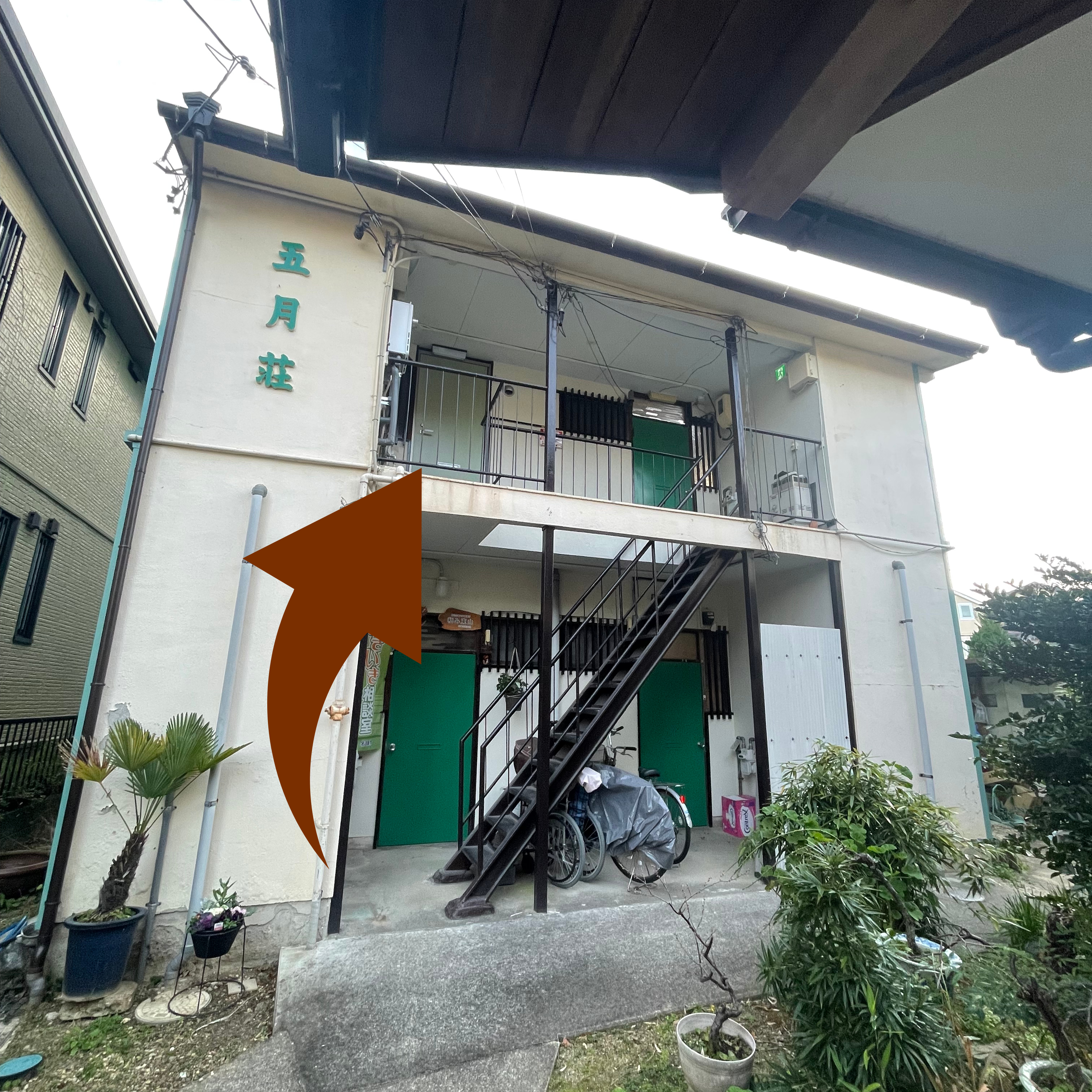 2.五月荘を正面にして最も左上のお部屋です。(よく見るとドアの色が違う部屋)